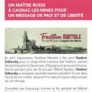 Depuis quelques années, Vladimir Zaïkovsky, vient faire une tournée de stages en Europe de l'ouest au printemps et en automne. Il est venu deux fois à Cagnac-les-Mines en 2025 mais pour des raisons logistiques ne pourra pas revenir chez nous au printemps.